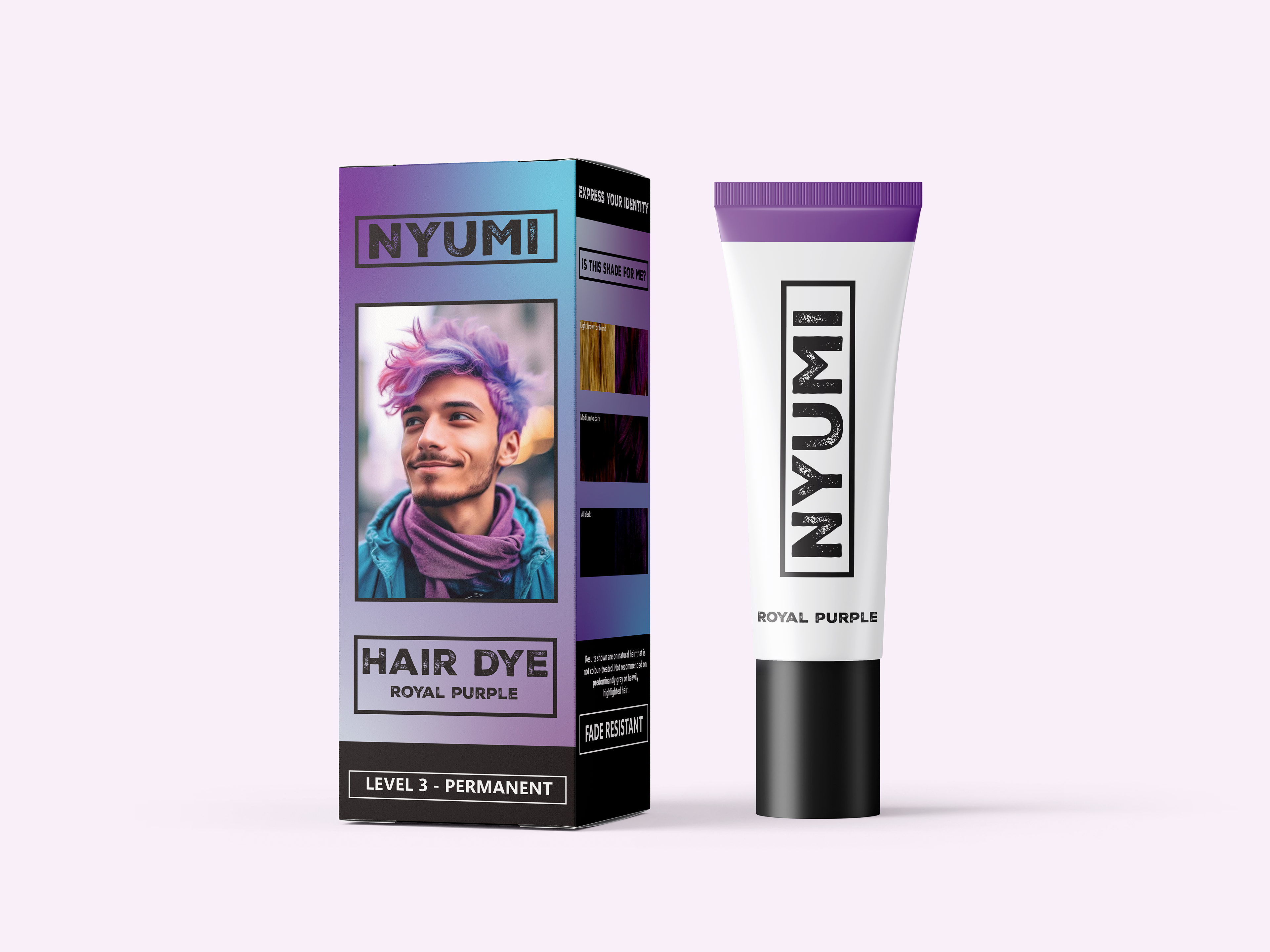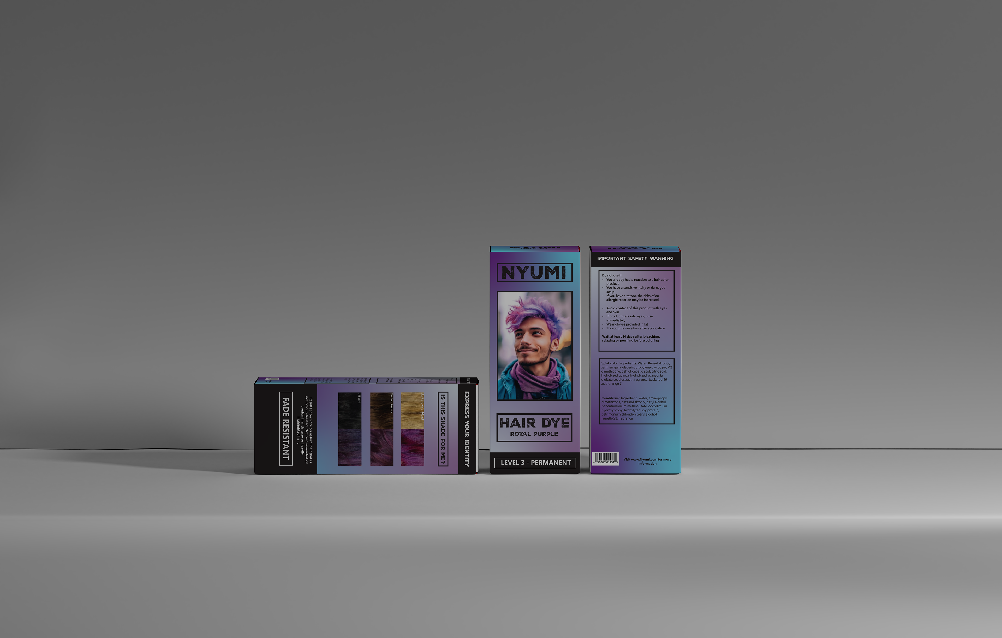 The goal of this project was to design and construct a box product for a brand named NYUMI, featuring a vibrant aesthetic packaging box for a hair dye product.